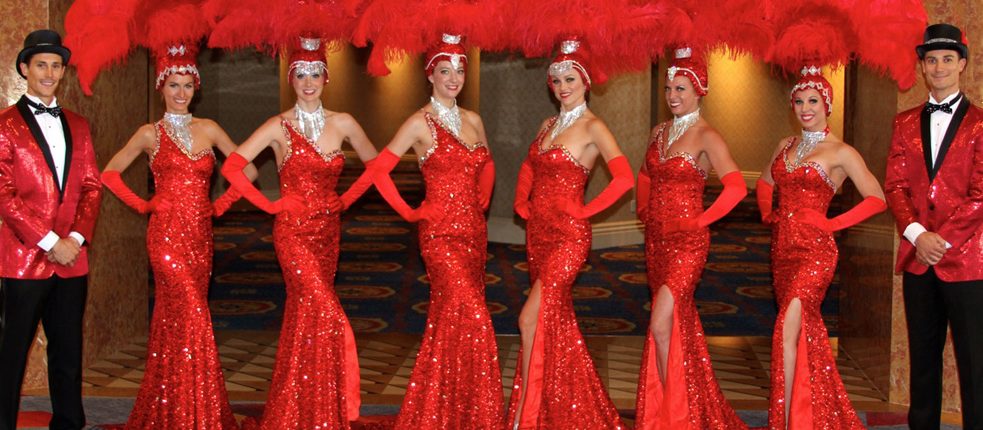 Nothing says “Welcome to Las Vegas” like a beautiful, authentic Las Vegas Showgirl. Welcome your guests, pose for pictures, escort your CEO or VIPs to the podium, or create a custom, gorgeously choreographed musical dance number with Showgirls and Elvis featuring feathers and rhinestones galore! Whatever your event theme may be, Showgirls are the perfect icing on the cake for a Las Vegas event. We have many conservative, corporate options to choose from as well as traditional.